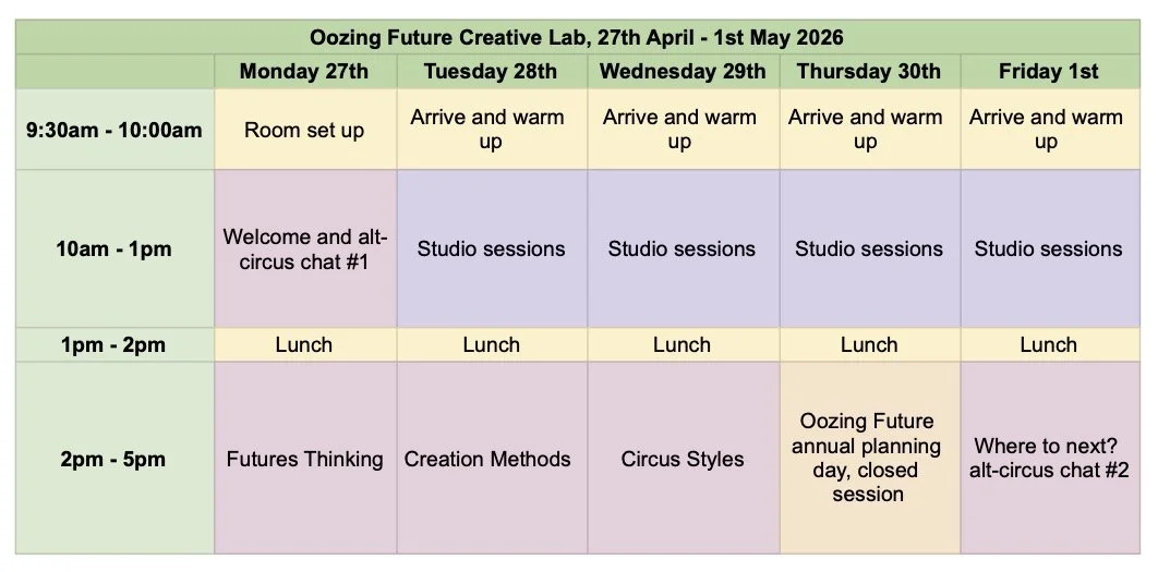 Our creative labs offer an important opportunity for artists of different disciplines to come together in conversation and explore new approaches to creative practice. With a focus on futures thinking, community building, and the development of alternative methods of thinking through performance, all sessions in the Lab are offered for free to ensure maximum accessibility. The first Creative Lab was hosted in Melbourne/Naarm by the Darebin Arts Centre in 2025 and included workshops on alt-circus, futures thinking and creative methods. The upcoming 2026 Creative Lab will be hosted by Next Wave in Melbourne/Naarm between 27th April - 1st May 2026. Join the Signal group here for daily updates and more info: Join Group